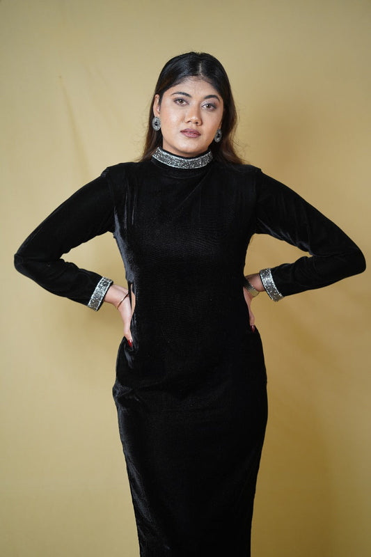 Velvet Black Dress with Elegant Detailing