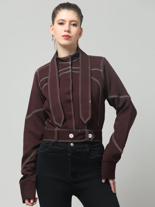Wine Stitch Detail Belted Jacket