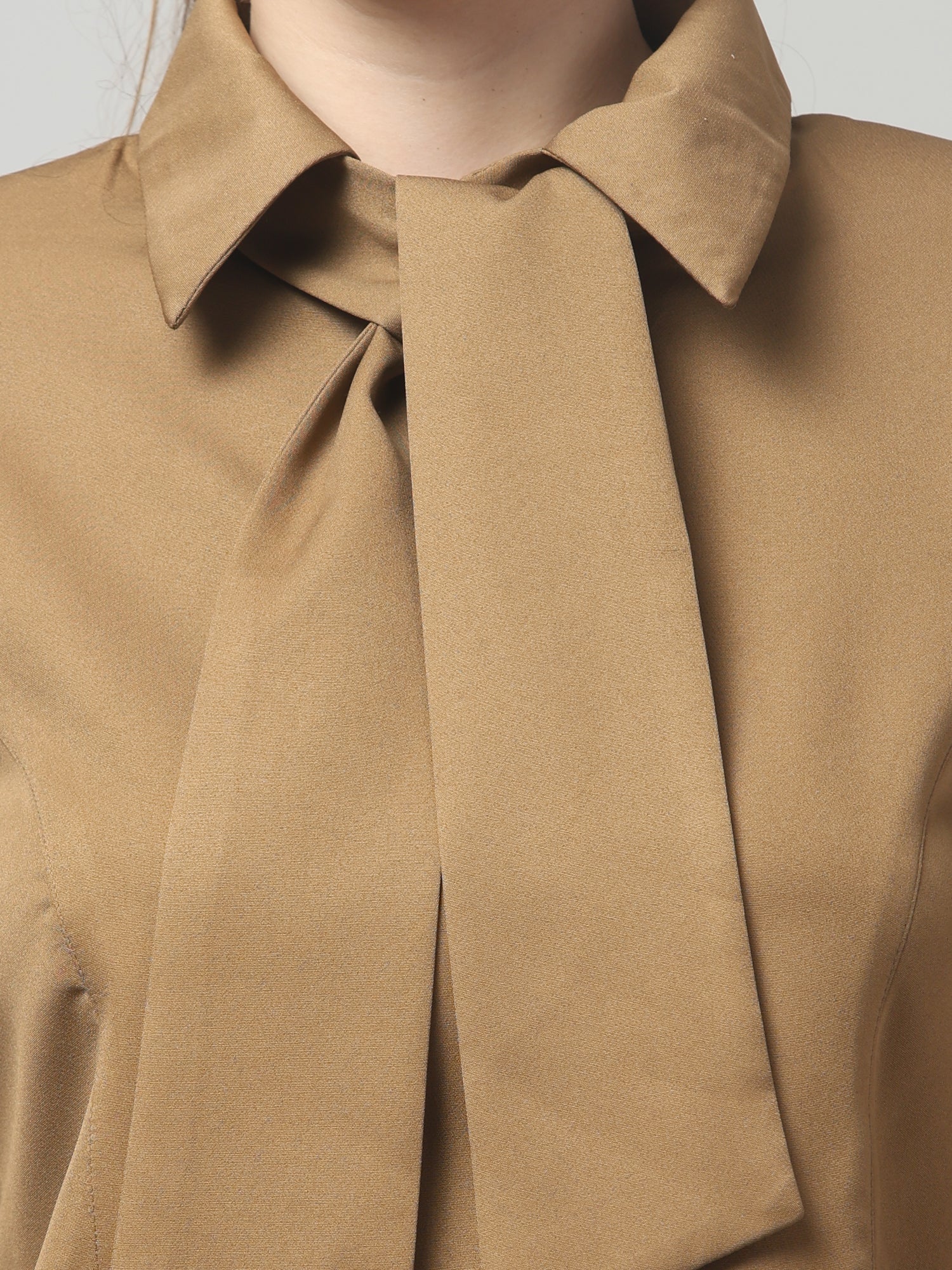 Camel Knot-Neck Structured Shirt