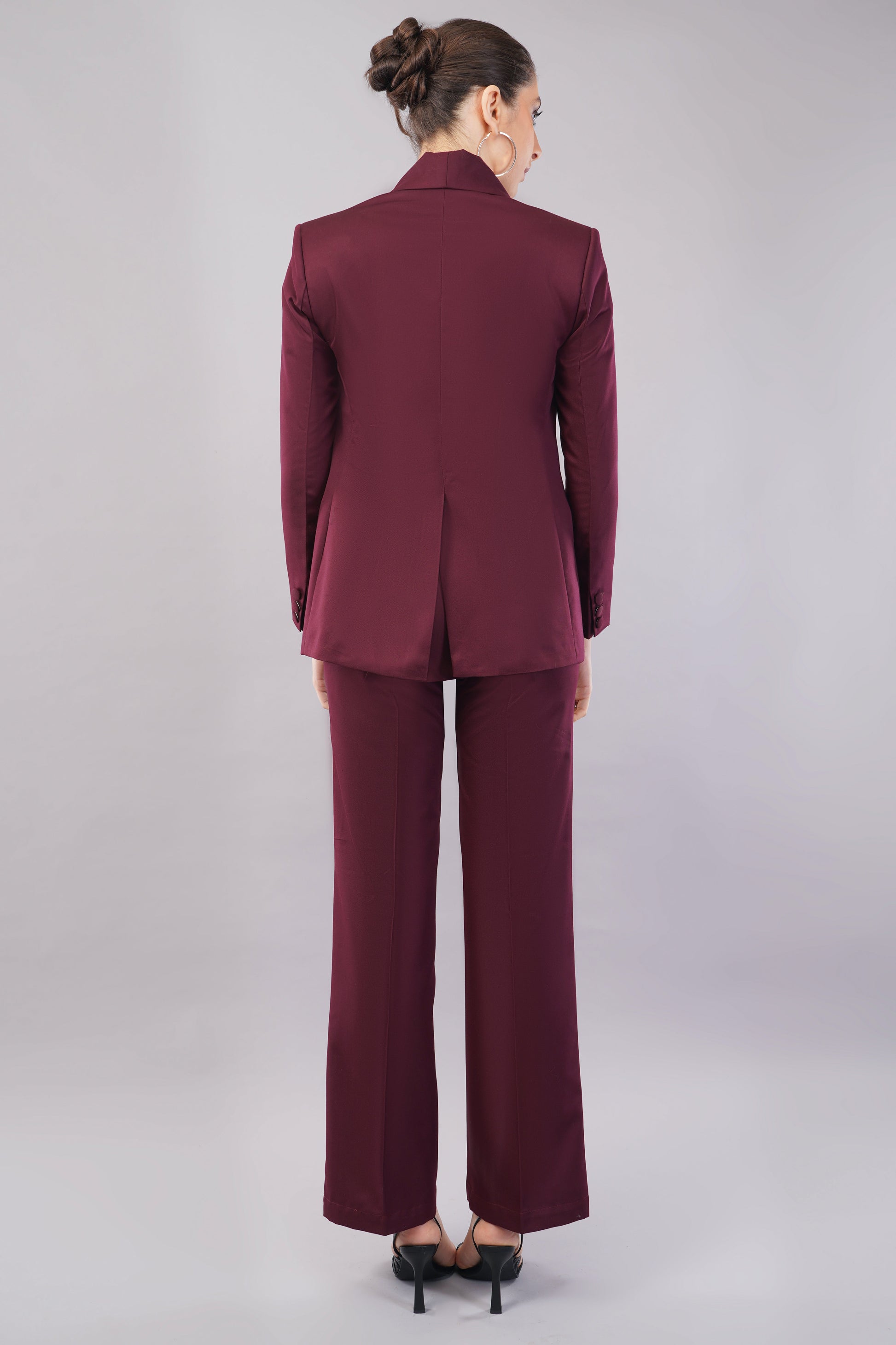 Designed for a flawless fit, these deep burgundy pants offer a sleek, tailored silhouette with a flattering straight-leg cut. Crafted from premium fabric, they provide comfort and sophistication, making them a versatile staple for both formal and chic casual looks.